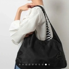 リバーシブル。裏返すと、黒の無地のバッグになります。ボーダー柄はコットン素材であたたかみがあり、黒の無地面はナイロン素材で軽く仕上がっています。