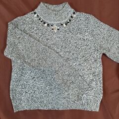 レディース✻ニット グレー 首元キラキラセーター✻サイズМ 難あり