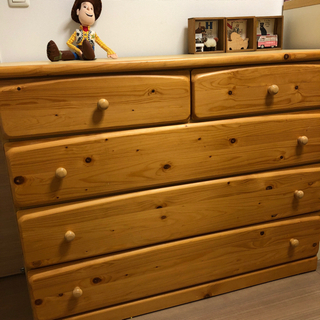 引き出しがカントリーなデザインでインテリアにも馴染みます。左脇にフックを2つ付けて使っていました。