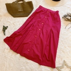 【日本製】ラズベリーピンク フレアスカート ロングスカート ショッキングピンク