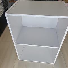 色はホワイトのカラーボックス2 段です。幅41.6cm. 高さ59.6cm. 奥行29.0cm. 板厚みで、各棚内寸は39.0x27.2x27.5です。