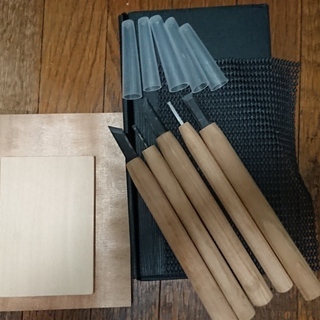 ほとんど未使用の彫刻刀セット。5本と箱付き。