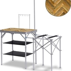 キャンプテーブル アウトドアテーブル キッチンテーブル オールインワン 折りたたみ アルミ 作業台 補助台 調理台 ランタンハンガー ツールハンガー ツーバーナー対応 スタンド 高さ調節 耐熱 防水 天板