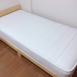 シングルのすのこベッドフレームとニトリのポケットコイルベッドマットのセット販売です。
