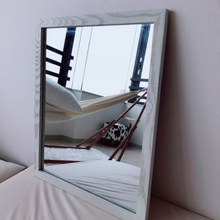 【ミラー】ホワイト壁掛け鏡