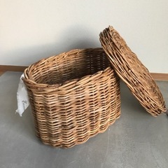 シンプル&ナチュラルなデザインのオーバル型バスケット。ふた付きなので中に入れたものをすっきり隠せて便利です。