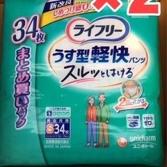 【譲ります】【2個】ライフリー うす型軽快パンツ S 34枚入り まとめ買い ユニチャーム