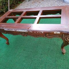 ガラスが割れてテープで止めていた跡がついていますが、磨いて着色→ニスで仕上げ、改めてガラスまたは木製の天板を乗せられるとご使用/転売頂けるようにと思います。本物の木の彫り物ですので、安くはなかったです。