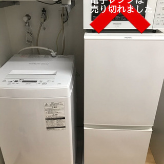 洗濯機、冷蔵庫、電子レンジの三点セットです。