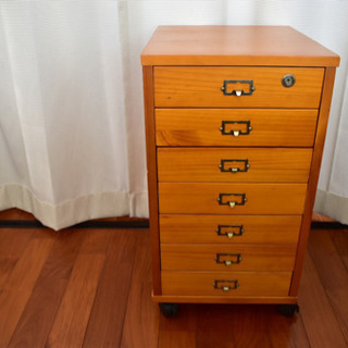 木材はパイン材、引き出しの底面はプリント化粧板の様な感じです。