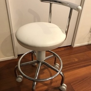 白の昇降式スツールです。金属部分にサビは見られますが出品にあたり磨いたら割とピカピカになりました。座面や背もたれは綺麗ですし昇降機能も問題ないのでまだまだお使いいただけるかと思います。多少の汚れは気にならない方に。引き取り希望ですが近隣でしたら+500円頂ければお届けします。