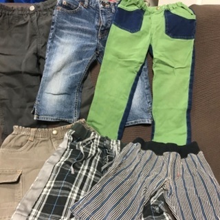 90〜110迄のジーパンやズボンです。最後の写真2枚は半ズボンです。半ズボンは使用感がありますが、他はあまり使用していないです。タグに名前が書いてあるのが2枚ありますが、保育園等で気にされない方はいかがですか??もう少し欲しい方はジーパンを一枚20円で増やす事できます。ジーパンは好きで買ってましたが、あまり履かなかったので、使用感はあまりないです。