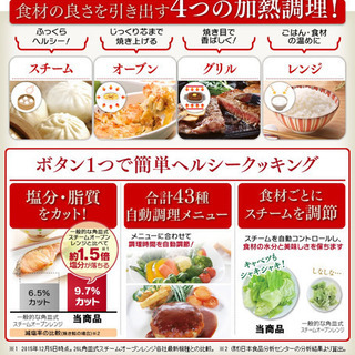 タンク式過熱水蒸気を使って調理することで食材に含まれている余分な油分・塩分をカットして、栄養素を残したままヘルシーに調理するスチームオーブンレンジです♪