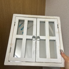 窓の形をしているをオープン式の鏡です。扉を閉じたまま壁にかけることもでき、フェイクウインドウどのように使うこともできます。購入当時から風合いのある仕上げです。