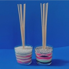たくさんの色砂からお好きな4色を選び取り、グラスにスプーンを使って重ねていくカンタンなのに奥が深いアート作品作りです。