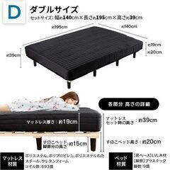 新品、未開封、サイズ買い間違い為安く譲ります、ダブルベッド ポケットコイル693個Ⅹすのこベッドセットおしゃれ、北欧、
