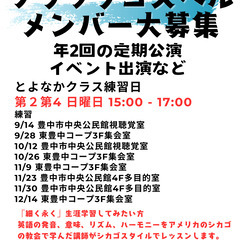 第二 第四 日曜日の15:00-17:00に豊中の公民館や文芸会館などで練習しています。