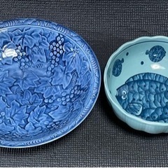 2枚セット価格。葡萄柄の大皿と可愛い魚の柄の中器です。大皿24.5cm、中器16.5cm。早く取りに来てくれる方優先させて頂きます。