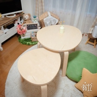 白い木製のもので、ぬいぐるみなどを乗せても可愛いです。