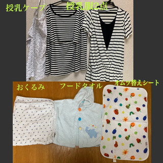 おくるみ フードタオル、オムツ替えシート、授乳ケープ、授乳服セット