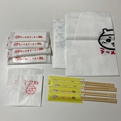 ちいかわ ラーメン豚 おしぼり 紙ナプキン 割り箸 紙エプロン 4人分