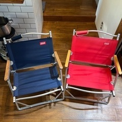 コンパクトフォールディングチェアのレッドとネイビー2脚セットです。