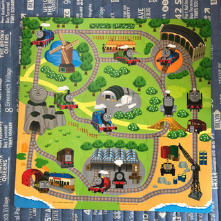 線路が書いてあり、その上を電車やトーマスを走らせて遊べます。