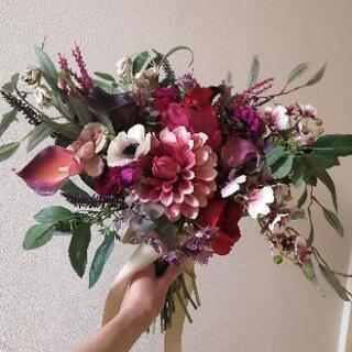 ダリア アネモネ カラーを中心としたボルドー系のアートフラワーブーケです。