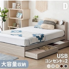 【決定しました】ダブルベッド アッシュホワイト 収納付きベッド