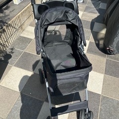 通気性のあるメッシュ部分と伸縮式ハンドルを備えたピンクのナイロン製ペットカート。