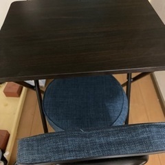 カフェテーブルの感じのちょっと小さめのテーブルとお椅子です。下の方少し壊れてるんですが問題なく使えました