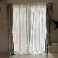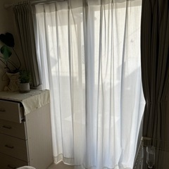 模様替えの為不要となりましたが、シミ、シワ、ほつれ色褪せなどないきれいなままなのでまだまだもったいなくて、どなたか使っていただけると嬉しいです。 色はホワイトとグレーのストライプでレースカーテンは灯りをつけても外から見えない様になっています。縦183センチ横幅160センチの窓に取り付けていました。
