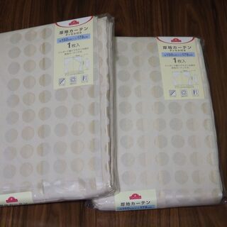 ベージュのカーテン、幅150cm×長さ178cmの2枚セットです。