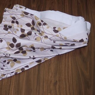 ベージュ葉柄のカーテン、幅100cm×長さ212cmの2枚セットです。