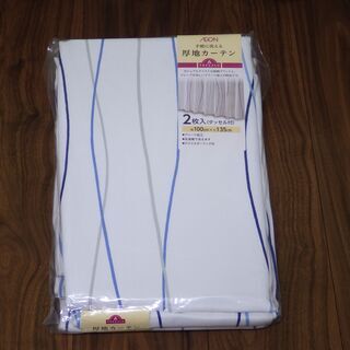 カーテン 100×135cm 2枚 白地青ライン 未使用 ⑥
