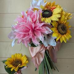 造花ウェディングブーケ・ブートニアのセット ひまわり