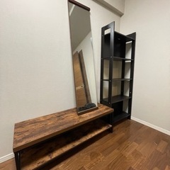 パソコンデスク、椅子、キャリーバック×2、収納棚
