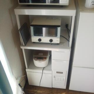 中段棚と炊飯器を入れる棚は、引出となっていて、手前に出せます。本体コンセント付。