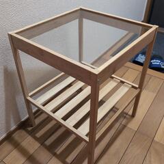 サイズを測るものが手元になく、感覚で高さ膝ぐらいの、縦横25センチくらい?のサイドテーブルだと思われます💦
