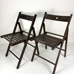 こちらの製品はイケアの木製折り畳みイス2脚になります。経年劣化により剥げてる部分や色褪せなどもありますが、機能的には問題なくまだまだ使えます。イスとして庭やベランダなどに置くのもいいですし、鉢などを置いても様になります。