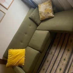 緊急19日】オシャレな3人掛けソファ グリーン色 クッション3個付き