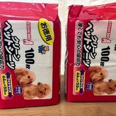 ペットシート、100枚1袋と開封残約70枚1袋です。
