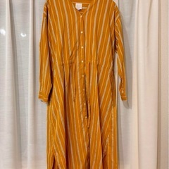 シャツ生地/長袖/前開きワンピース/ストライプ