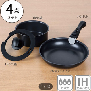 【IH対応】鍋・フライパン4点セット!取手取り外し可⭐︎