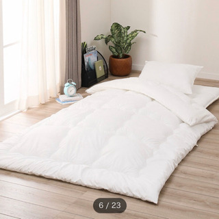 掛け布団、掛け布団カバー、敷布団、まくら、枕カバーのセットです。