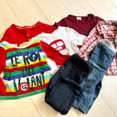 フランスにしか売ってない物なので誰とも被らないです。長袖Tシャツ4着、ボタンシャツ1着、長ズボン2着。名前シールついたままです。全てだいたいサイズ80cm前後です。