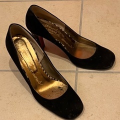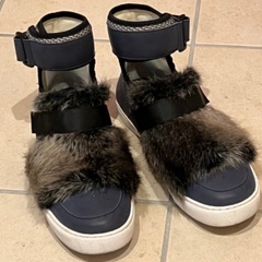 中古 ネイビー ファー付きスニーカー 24.5cm〜