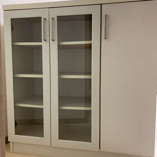 【傷などの状態】汚れ、傷、劣化あります。(天板、右側扉など)素人組み立てなので、左側扉の左右差あります。
