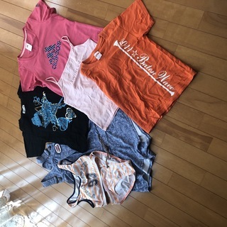 娘がバトンを習っていた時のTシャツ2枚、キャミソール1枚、アディダスTシャツ1枚、水着のセット1着になります。