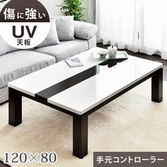 手元コントローラー付 幅120 600wハロゲンヒーター 傷に強い UV塗装 センターテーブル 鏡面 継ぎ脚 長方形 コタツ 炬燵 リビング シンプル おしゃれ 白 ホワイト モノトーン